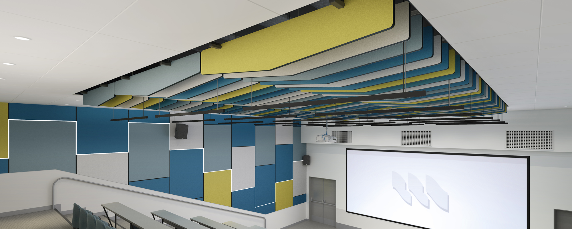 VIEW PRODUCTdECO Ceiling Tiles brings colour to a standard suspended ceiling system.