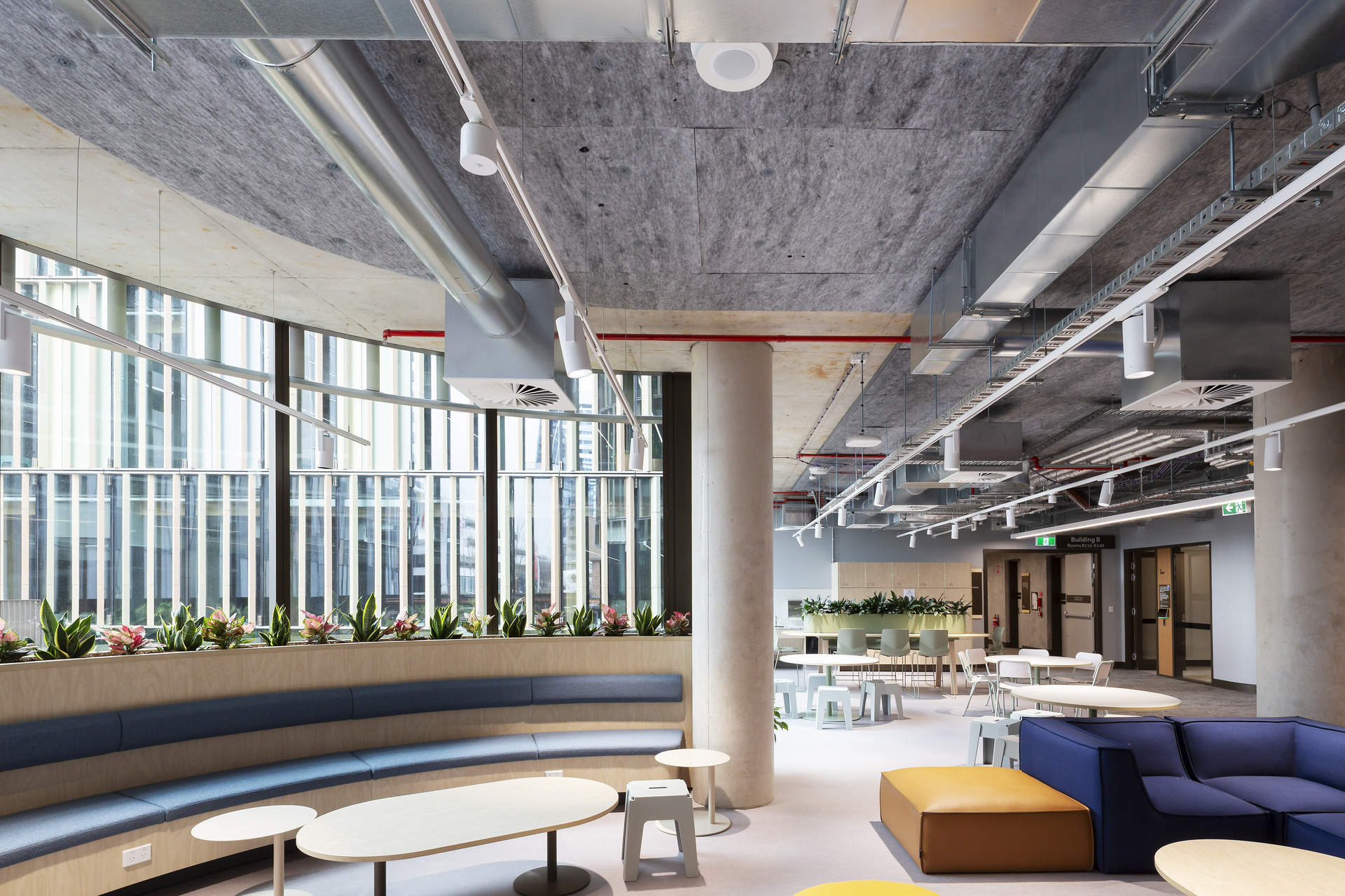Critical in meeting the acoustician’s requirements throughout the building and supporting a calm, focused learning environment, Martini Absorb and Martini Soffit panels were selected through close collaboration between Murray Hildebrand, CSR’s Specification Manager NSW Commercial, and the Gray Puksand team, and strategically integrated alongside Woven Image products for targeted noise absorption.