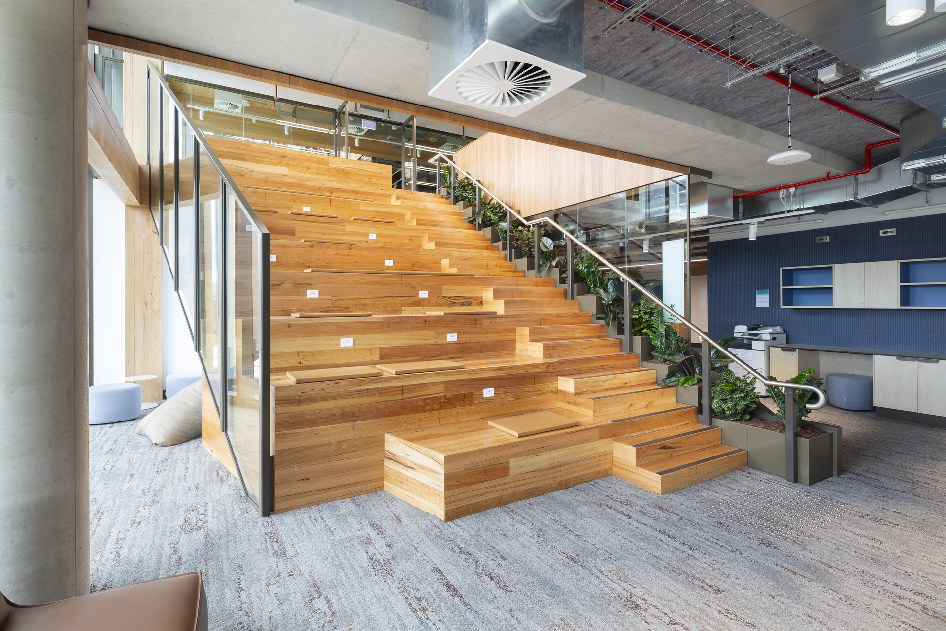 While the atrium is striking in appearance, it also presented practical challenges. Its large volume, open circulation and constant activity meant acoustic performance was critical. Managing sound levels was fundamental to ensuring comfort and maintaining the building’s overall learning environment. At the same time, the ACT Government required all materials in the project to meet a 30-year design life, a significant leap from the industry-standard 10-year warranty, meaning every product needed proven longevity. Because the project was targeting a 6-Star Green Star rating, materials also had to carry recognised sustainability certifications and support the building’s broader environmental goals.