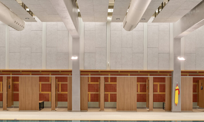 Alongside Troldtekt® White Ultrafine, the team selected the M750 Top Hats, a part of the Rondo ceiling and wall framing system. Made from high-quality steel, the product also carries an EPD and Rondo’s Level 2 certification from Steel Sustainability Australasia, further highlighting the project’s commitment to sustainability. As a result, CO.OP Studio’s comprehensive design masterfully blends past, present and future to ensure that the cherished legacy of the Carnegie Memorial Swimming Pool can continue for decades to come, while setting a new industry benchmark for sustainable public architecture.