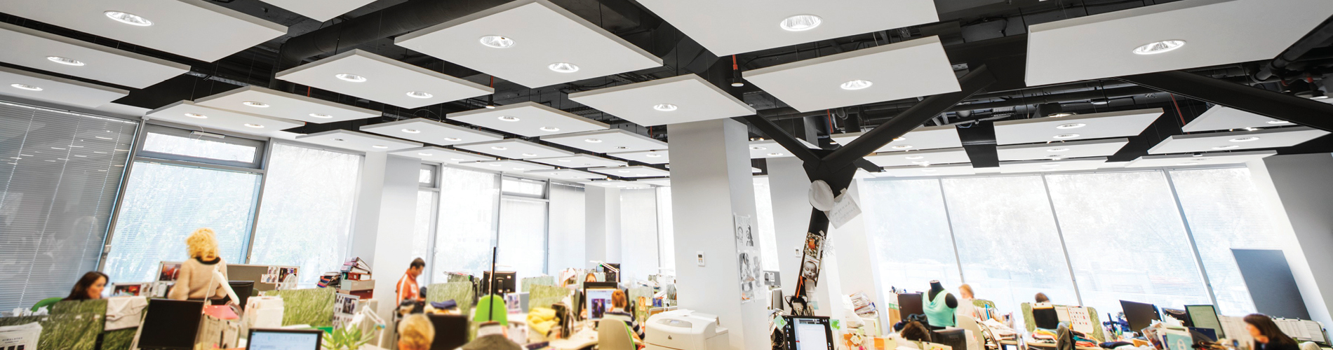 The Savage Office in Russia used Ecophon Solo Rectangle Ceiling Panels in their office fit out. This unique ceiling design provided a high acoustic and modern finish to the open plan office space.
